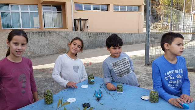 Avui amb les nines i nins de tercer i quart hem salat les olives que teniem en remull ja fa dues setmanes